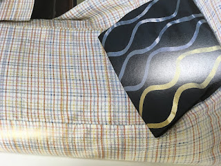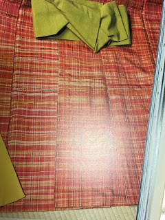 これはロートン織に多彩な横段の縞が入っています。規則的な横段になっているのかと想って見たんですが、どうもランダムに不規則に入れてあるようです。