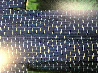 柄は大振りなほうですが、絣に力がなく、絣としてはそんなに良い作品とは想いませんでした。キレイに括れてはいたし、絣足も味がありましたが。もしかしたたら白洲正子が細めの絣を作らせたのかもしれません。私が注目したのは、グールの色です。いまのよりもかなり濃いです。それによって白の絣と合わせて、色絣としての存在感と躍動感は出ている様に想いました。